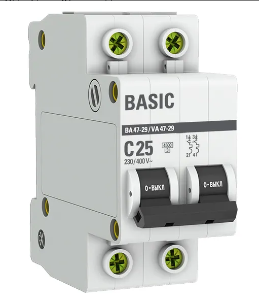 Автоматический выключатель ВА 47-29, 2P 25А (C) 4,5кА EKF Basic