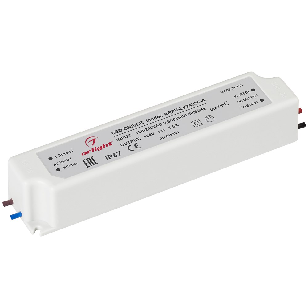 Блок питания ARPV-LV24035-A (24V, 1.5A, 36W) (Arlight, IP67 Пластик, 3 года)
