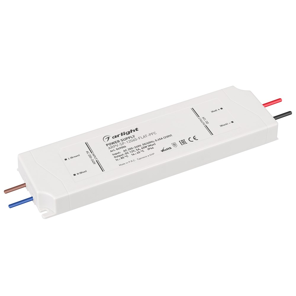 Блок питания ARPV-SP-12060-FLAT-PFC (12V, 5A, 60W) (Arlight, IP44 Пластик, 5 лет)