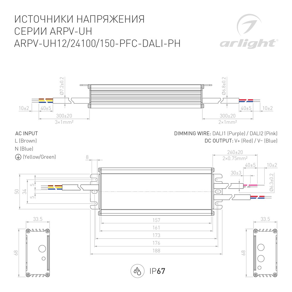 Блок питания ARPV-UH12150-PFC-DALI-PH (12V, 12.5A, 150W) (Arlight, IP67 Металл, 7 лет)
