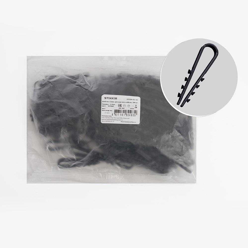 Дюбель-хомут для круглого кабеля ( 5-10мм), черный (100шт.), DCL00-05-10