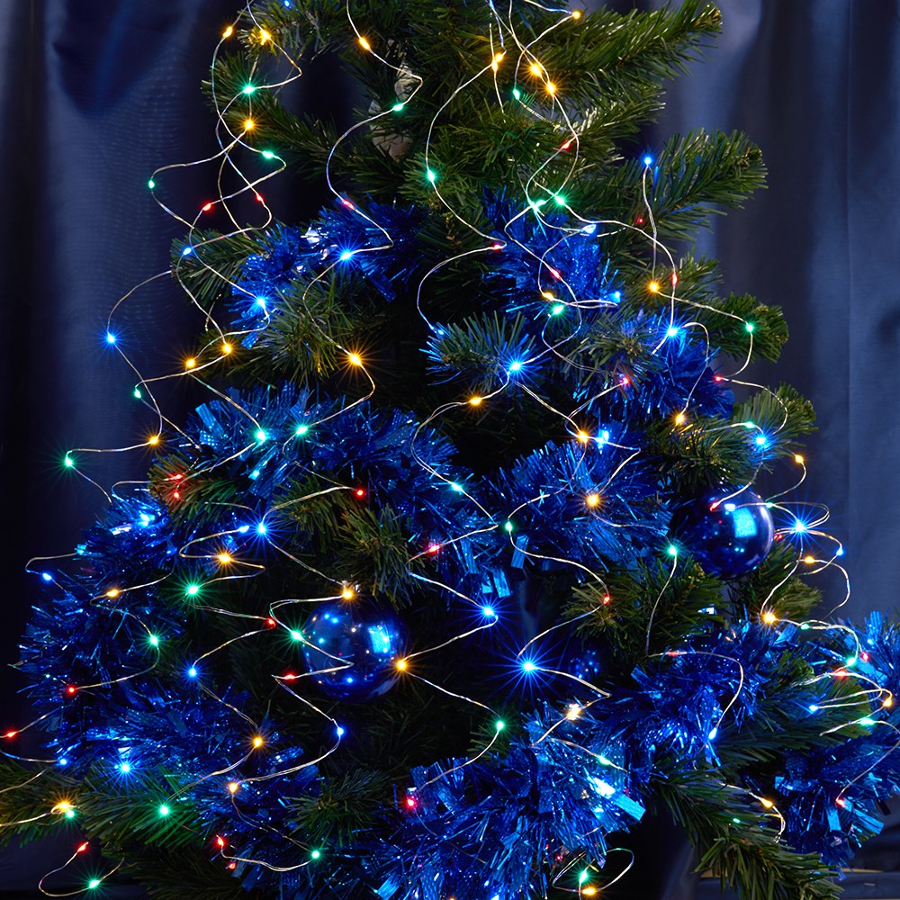 Гирлянда на елку FERON CL53, 200LED, (мультиколор), статичная (постоянного свечения), 2м+1м прозрачный шнур, расстояние между лампами 10см, IP20, 10.2W, на батарейках 4*AA, батарейки отсутствуют в комплекте,