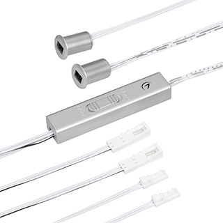 ИК-датчик SR-PRIME-RECESSED-IRD/H-R11-SL (12-24V, 48-96W, DOOR/HAND) предназначен для бесконтактного включения и выключения светодиодной ленты или других источников света с напряжением питания DC12В или DC24В и мощностью до 48/96 Вт. Благодаря микро-размерам двух датчиков круглой формы Ø 11 x 18 мм с проводами длиной 1м, легко устанавливаются в мебель, полки и другие конструкции. Блок управления расположен отдельно. Провод с коннекторами длиной 25 см позволяет быстро и безопасно подвести питание к блоку управления. Включение света происходит при открытии двери или поднесении руки к датчику. Переключатель между режимами расположен на корпусе блока управления. Датчик срабатывает на расстоянии 0,5- 10 см. Серебристый цвет исполнения корпуса позволяет подстроиться под цветовую гамму мебели. Отличное решение при организации подсветки в двустворчатых шкафах или шкафах-купе, и др. мебели.
