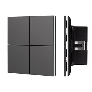 Встраиваемая металлическая панель чёрного цвета с кнопочным управлением, предназначенная для включения и выключения световых сцен в системах управления светом KNX. Позволяет осуществлять включение/выключение, диммирование, управление шторами и жалюзи, управлять сценами. Поддерживает управление с помощью 4 настраиваемых рокерных клавиш. Каждая клавиша может выполнять функции 2-х клавиш. Устройство совместимо с исполнительными устройствами стандарта KNX, в том числе, мировых производителей ABB, SCHNEIDER ELECTRIC, SIEMENS, ZENNIO и другими. Удобное и точное управление при помощи отдельных механических кнопок для каждой функции. Питание от шины KNX. Габариты устройства составляют 86x86x33 мм, установка в стандартную монтажную коробку. Пластиковый корпус, цвет чёрный, безрамочный корпус, материал - алюминий, отклик вибрацией, светодиодная индикация.