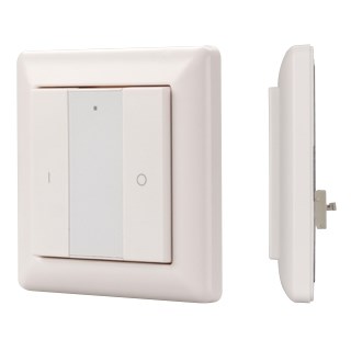 Встраиваемая пластиковая панель белого цвета с кнопочным управлением, предназначенная для управления одноцветными светодиодными лентами, светильниками и другими источниками света в системах управления светом DALI. Позволяет включать/выключать свет и менять его яркость в 1 группе либо в режиме широковещателя (Broadcast). Установка номера группы и сцен выполняется переключателями на задней стороне панели. Устройство совместимо с диммерами стандарта DALI. Передача команд от панели к диммерам выполняется по общей двухпроводной шине DALI. Удобное и точное управление при помощи отдельных механических кнопок для каждой функции. Питание от шины DALI. Габариты устройства составляют 75х75х18 мм. Панель совместима с декоративными рамками ведущих мировых производителей (GIRA, JUNG, BERKER, MERTEN).