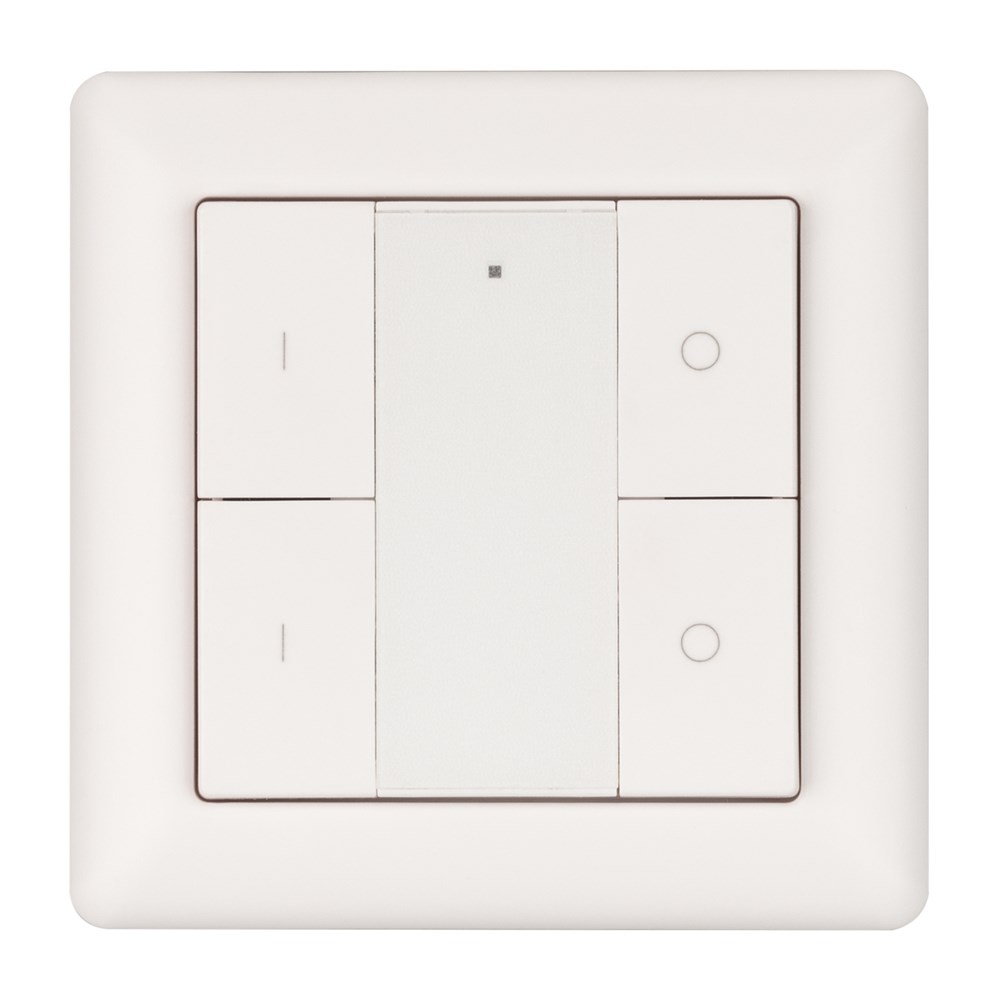 Встраиваемая пластиковая панель белого цвета с кнопочным управлением, предназначенная для управления одноцветными светодиодными лентами, светильниками и другими источниками света в системах управления светом DALI. Позволяет включать/выключать свет и менять его яркость в 2 группах либо в режиме широковещателя (Broadcast). Установка номера группы и сцен выполняется переключателями на задней стороне панели. Устройство совместимо с диммерами стандарта DALI. Передача команд от панели к диммерам выполняется по общей двухпроводной шине DALI. Удобное и точное управление при помощи отдельных механических кнопок для каждой функции. Питание от шины DALI. Габариты устройства составляют 71.2х71.2х13.6 мм. Панель совместима с декоративными рамками ведущих мировых производителей (GIRA, JUNG, BERKER, MERTEN).