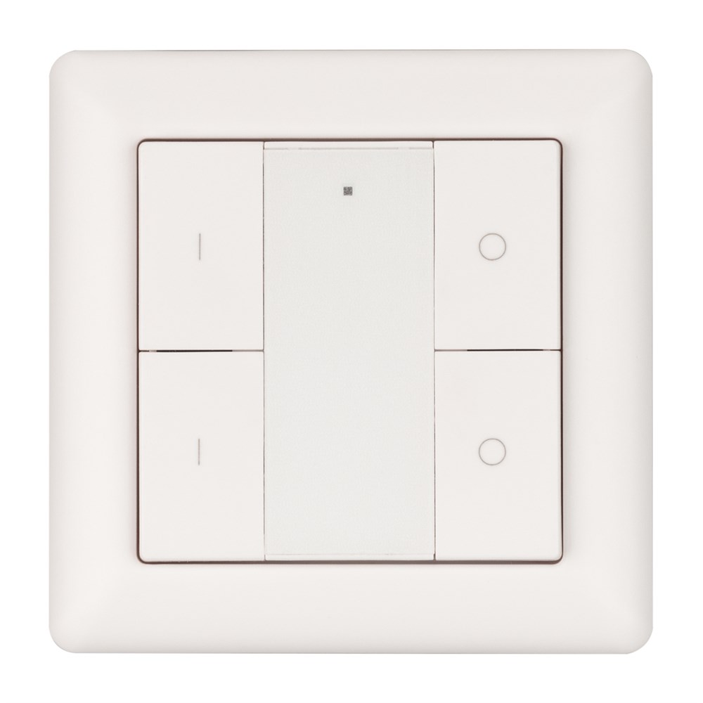Встраиваемая пластиковая панель белого цвета с кнопочным управлением, предназначенная для управления одноцветными светодиодными лентами, светильниками и другими источниками света в системах управления светом DALI. Позволяет включать/выключать свет и менять его яркость в 2 группах либо в режиме широковещателя (Broadcast). Установка номера группы и сцен выполняется переключателями на задней стороне панели. Устройство совместимо с диммерами стандарта DALI. Передача команд от панели к диммерам выполняется по общей двухпроводной шине DALI. Удобное и точное управление при помощи отдельных механических кнопок для каждой функции. Питание от шины DALI. Габариты устройства составляют 81х81х22.5 мм. Панель совместима с декоративными рамками ведущих мировых производителей (GIRA, JUNG, BERKER, MERTEN). Стандартная рамка входит в комплект поставки.