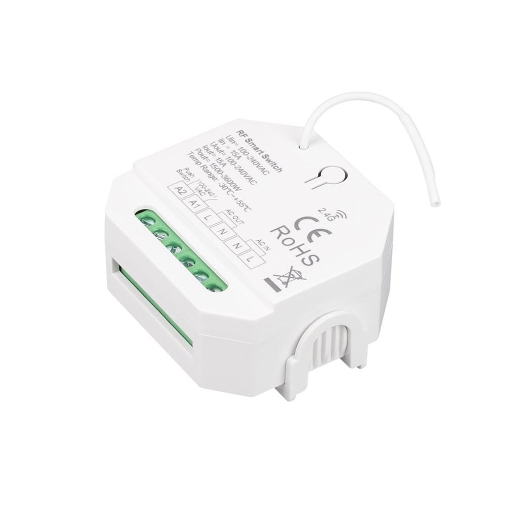 INTELLIGENT ARLIGHT Релейный модуль SMART-701-72-WTI-WTO-PS-IN (230V, 1x15A, 2.4G) (IARL, IP20 Пластик, 5 лет)