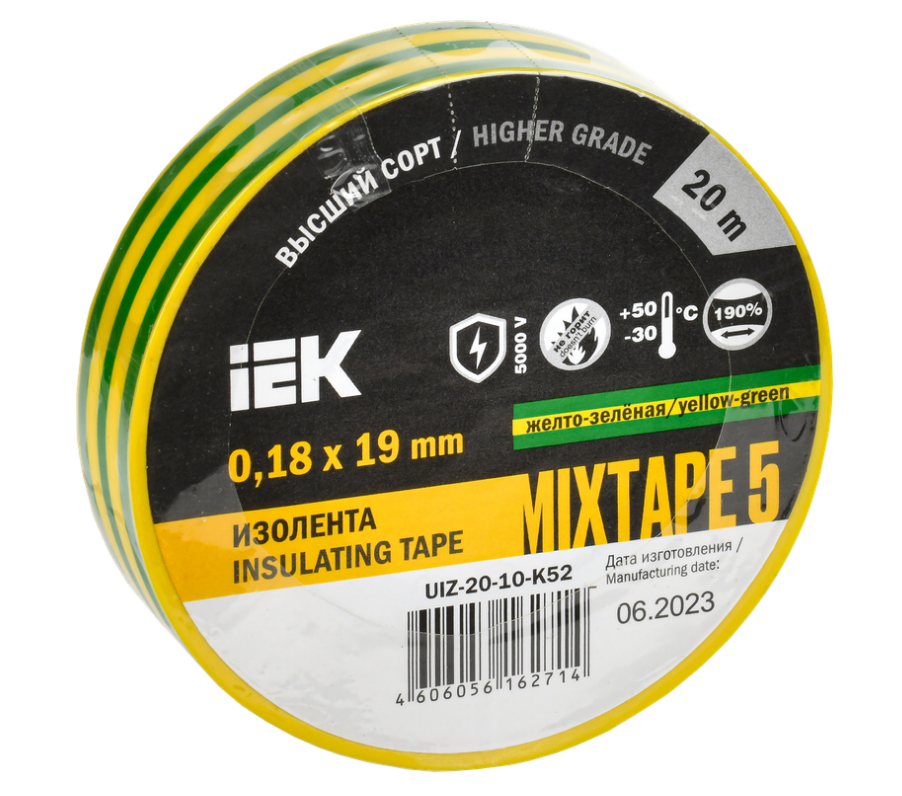 Изолента 0,18х19 мм желто-зеленая 20 метров ИЭК UIZ-20-10-K52