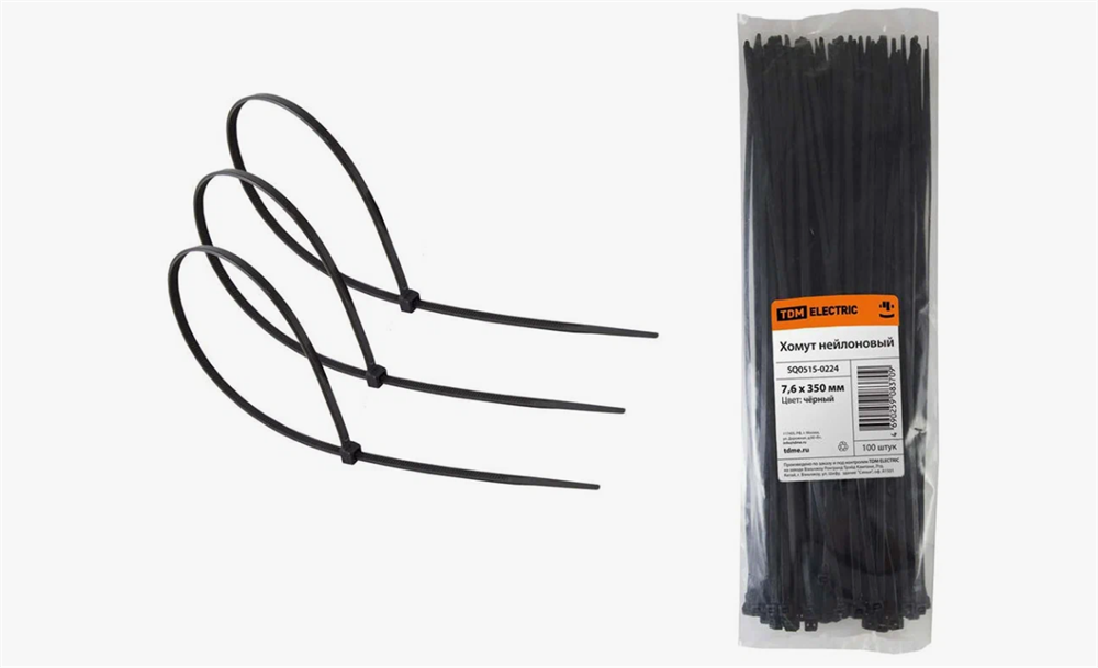 Хомут 7,6х400мм нейлон (черный) (100шт) TDM