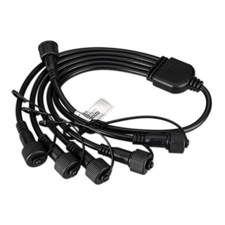 Коннектор питания (PLC сплиттер) разработан специально для подключения гирлянд серии RGB-SYNC. Оболочка из черного ПВХ придает ему элегантный внешний вид. Входное напряжение составляет 230V DC. Коннектор обеспечивает питание и сигнал на входе и выходе. Он имеет 5 выходных портов, каждый из которых поддерживает управление до 1400 RGB светодиодов. Общая поддержка управления составляет до 7000 светодиодов.