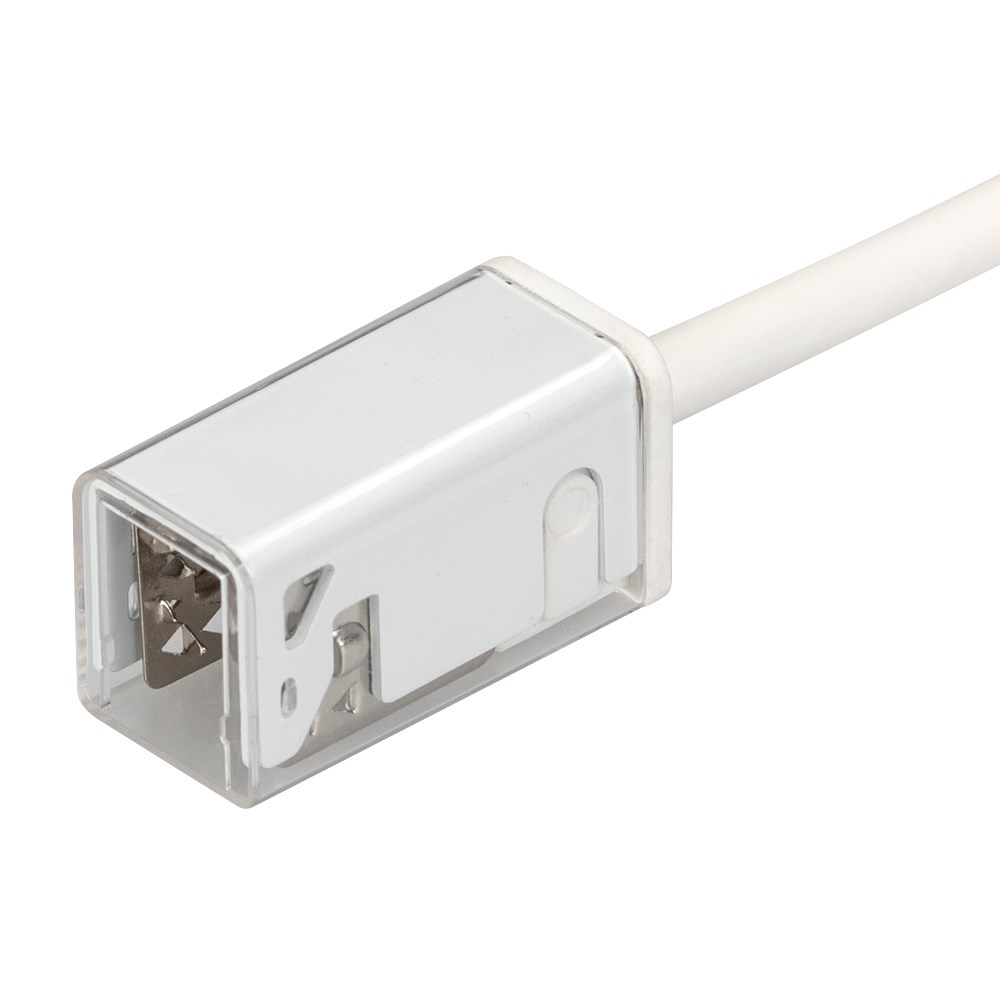 Герметичный коннектор питания для герметичной ленты серии MOONLIGHT, с сечением 17х12мм и длиной провода (горизонтальный вывод) 500 мм, обеспечивает простое и надежное подключение. Коннектор сделан из белого пластика и имеет габариты 45x17x20 мм.