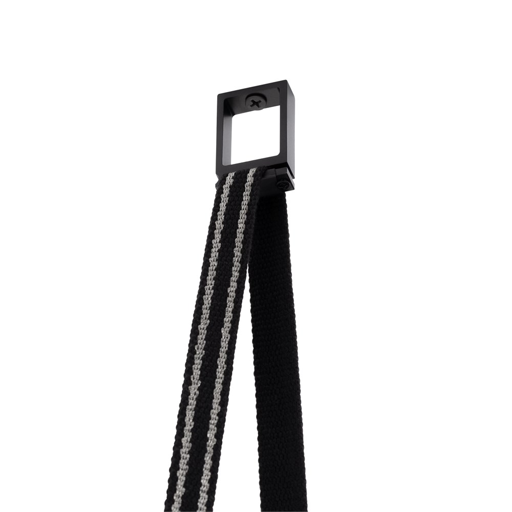 Потолочная крепление в виде проушины черного цвета для подвесного монтажа профиля на токопроводящие ремни. Крепится к потолку. Габаритные размеры составляют 10мм в длину, 28 мм в ширину и 45,5 мм в высоту.