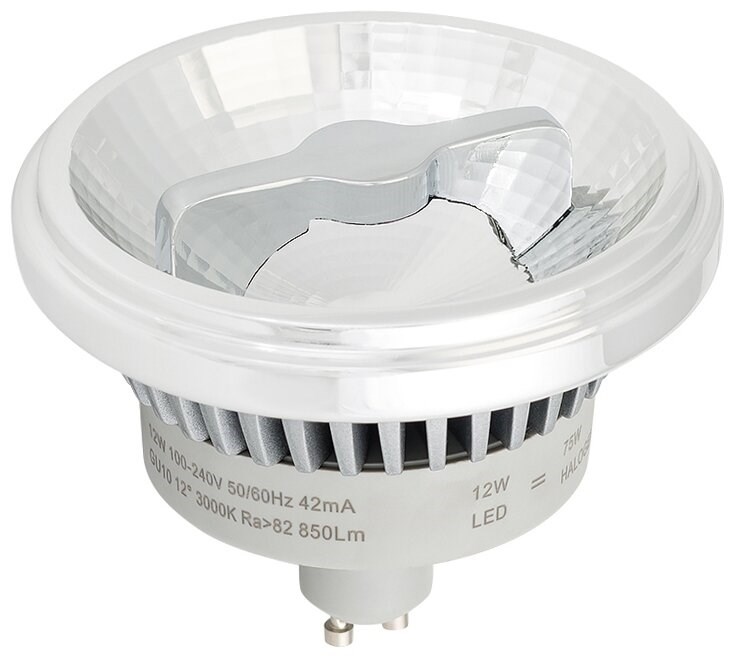 Светодиодная лампа AR111, цоколь GU10, светодиод COB Citizen, цвет БЕЛЫЙ ТЕПЛЫЙ 3000К, угол 24°, мощность 15Вт, напряжение 230V, Индекс цветопередачи CRI>92. Диммер TRIAC