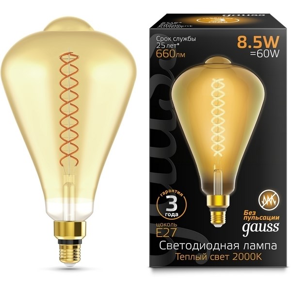 Лампа Gauss Filament ST164 8.5W 660lm 2000К Е27 golden flexible LED 1/6
