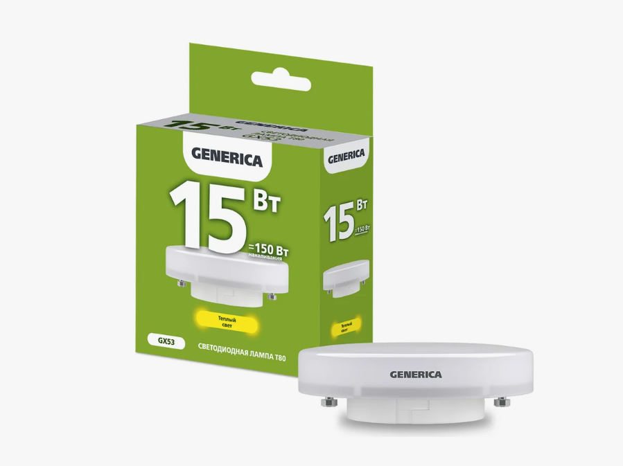 Лампа LED T80 таблетка 15Вт 230В 3000К GX53 GENERICA