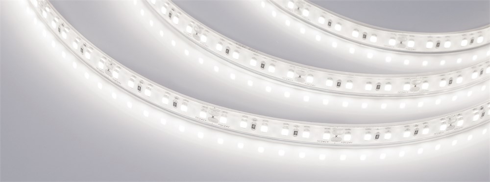 Герметичная светодиодная лента шириной 10.5 мм в полиуретановой оболочке с высокой степенью пылевлагозащиты IP68 для использования под водой на глубине до 2 м. Светодиоды SMD 2835 (120 шт/м) дневного белого цвета свечения (4000 - 4600 К), индекс цветопередачи CRI>90. Мощность 16.8 Вт/м, напряжение питания 24 В. Минимальный отрезок 50 мм (6 светодиодов). Для постоянного погружения и использования в агрессивной водной среде (плавательные бассейны, фонтаны, искусственные водоемы). Подходит также для использования на открытом воздухе. Герметичная оболочка устойчива к УФ-излучению, перегреву, помутнению и рассыханию.