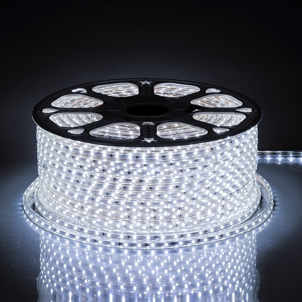 Лента светодиодная 220V FERON LS704, 60*SMD2835, 4,4W/m, IP65, 6400К (дневной), в комплекте 2 сетевых шнура, 2 заглушки, 2 коннектора, 10 крепежей , кратность резки 1000мм, раб.t -40°C...+40°C, бобина 100 метров*14мм*7 мм