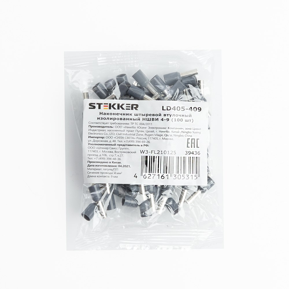 Наконечник штыревой втулочный изолированный НШВИ 4-9 (ОПТ упаковка 100 шт), LD405-409