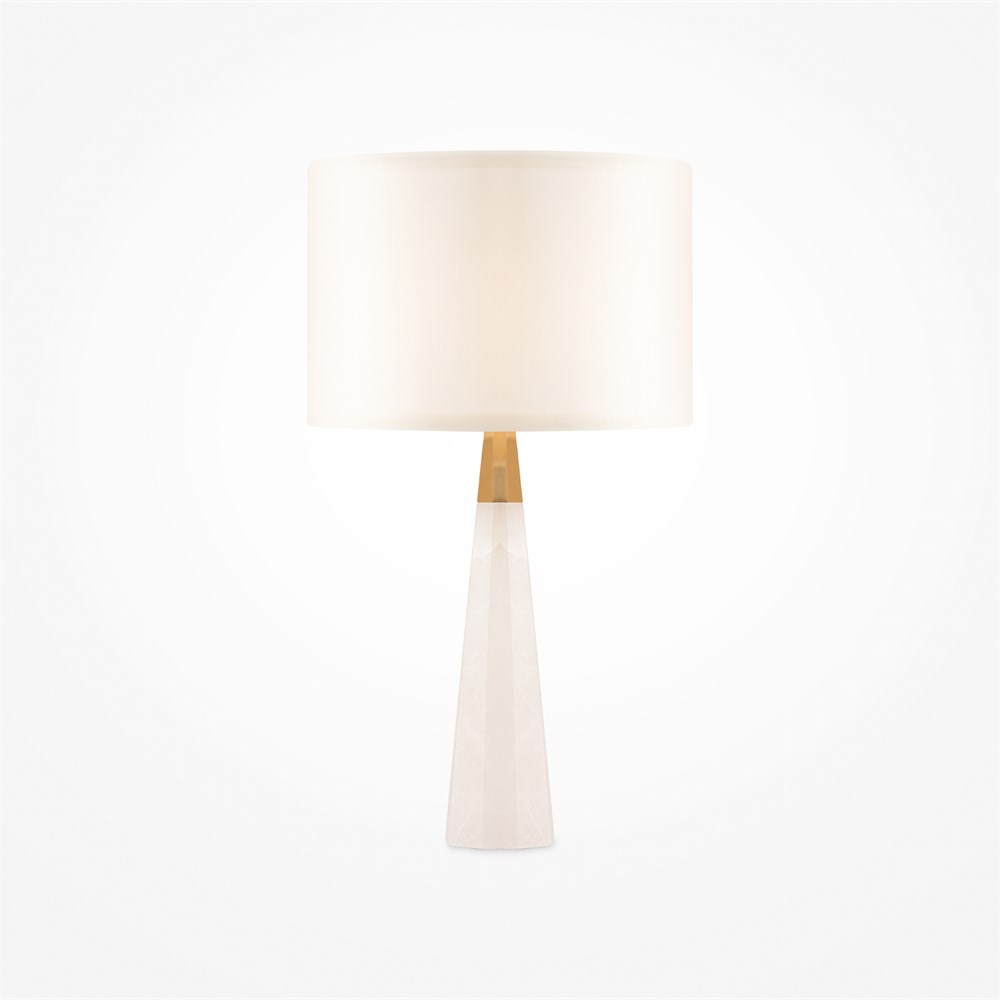 Металлическая арматура, цвет – латунь. Абажур – белый хлопок. Изюминка дизайна – элементы из натурального камня (алебастра). Трендовый микс фактур. Лаконичные формы в американском стиле.
