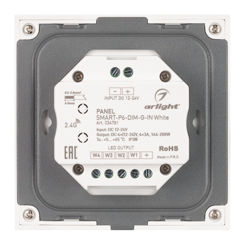 Панель SMART-P6-DIM-G-IN White (12-24V, 4x3A, Sens, 2.4G) (Arlight, IP20 Пластик, 5 лет)