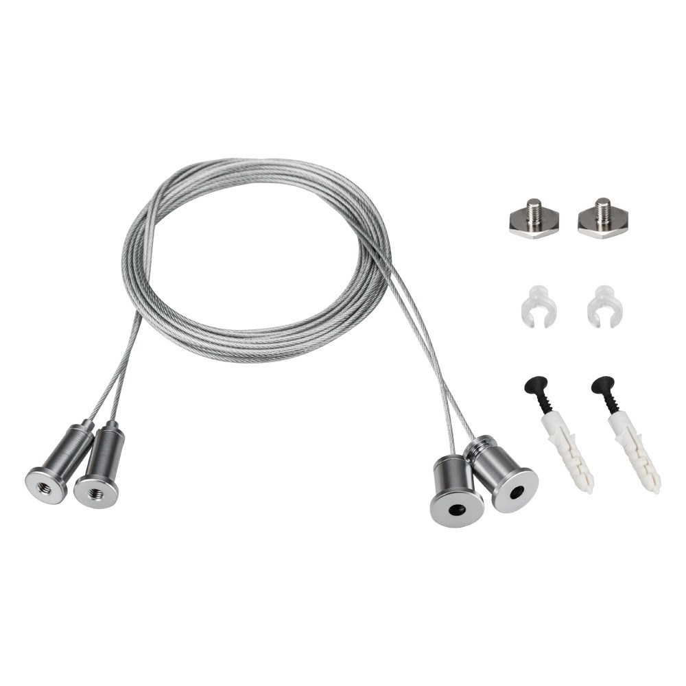 Подвес для профилей S2-LINE 4067, 5470, 7977, 10570 длиной менее 2 м. Два регулируемых троса длиной 2 метра позволяют легко зафиксировать конструкцию на необходимом расстоянии от потолка. Винт с площадкой 15х15х2мм.