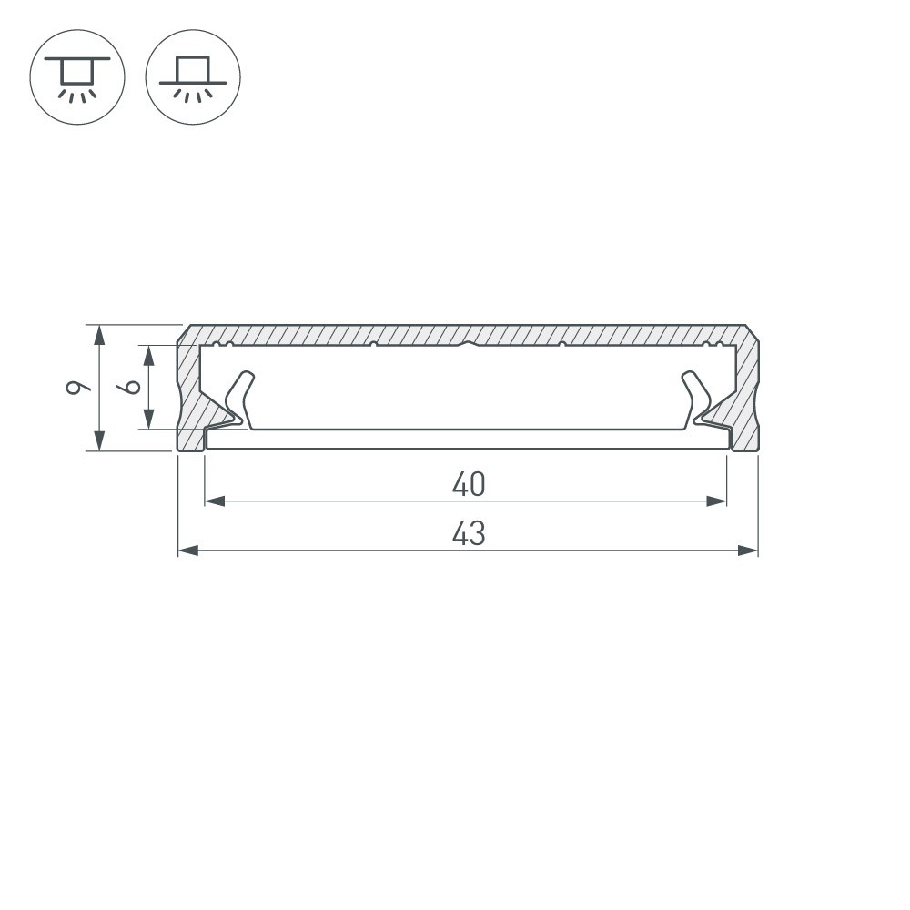 Алюминиевый светотехнический профиль для установки светодиодной ленты или линейки. Цвет серебристый. Длина 2020 мм, размер сечения 43х6 мм. Универсальный размер позволяет создать как декоративное, так и основное освещение. Монтаж осуществляется накладным способом. Рассеиваемая тепловая мощность 26 Вт/м позволяет подобрать источник света необходимой яркости и температуры свечения и реализовать самые интересные решения.