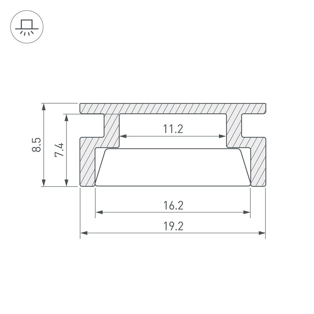 Габаритные размеры профиля составляют 3000 мм в длину, 19,2 мм в ширину и 8,5 мм в высоту. Площадка для установки светодиодных лент позволяет использовать ленту шириной до 11,2 мм и мощностью до 14,5 Вт/м. Это обеспечивает гибкость в выборе светодиодных лент и создает потрясающие световые решения.