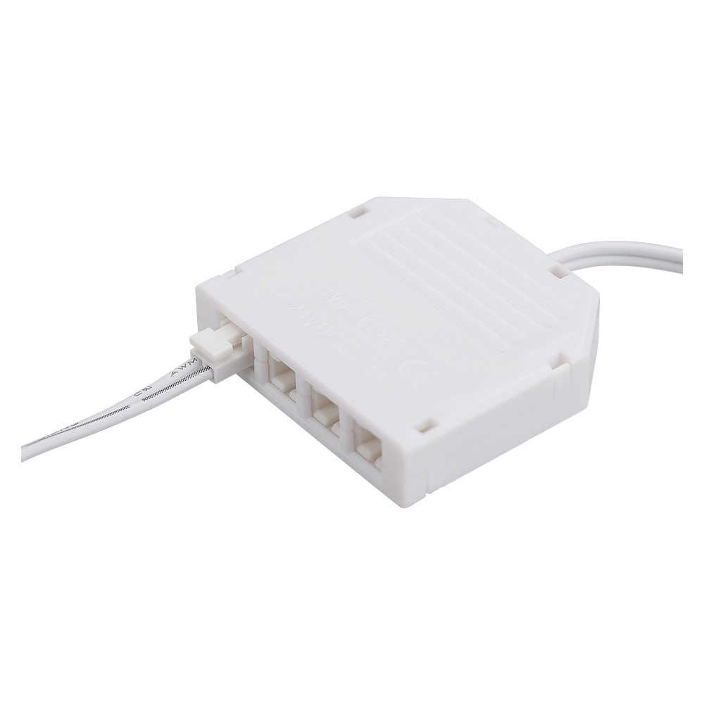Разветвитель BAR-DT-4xF 30cm (22AWG, 3A, 12–24V, Female) для подключения до 4-х линейных светильников BAR к одному источнику напряжения. 4 разъема dupont terminal "мама". Максимальный ток нагрузки 3А, напряжение 12–24 В.