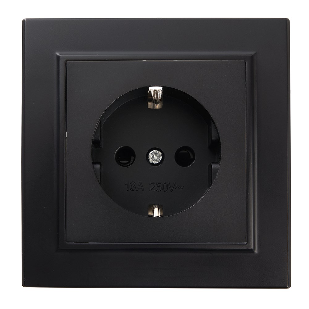 Розетка STEKKER PST16-9010-03 на 1 гнездо, с заземлением. Материал: ABS пластик, латунь, цвет черный, размер 84*84*40мм. Номинальное напряжение 250, номинальный ток 16А, диапазон рабочих температур 0..+35°C, IP20