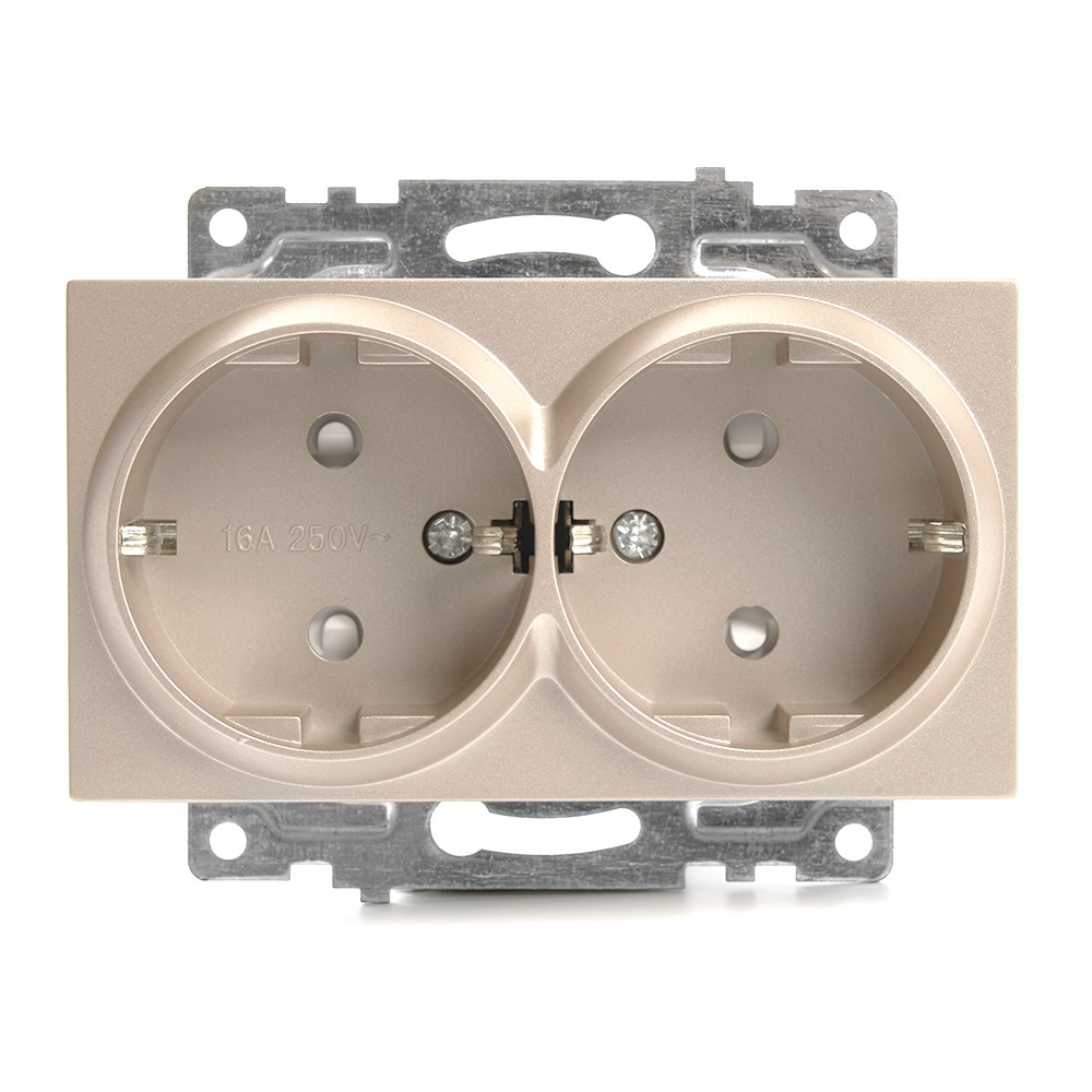 Розетка STEKKER GLS16-7114-02 на 2 гнездо, с заземлением. Материал: ABS пластик, латунь, цвет шампань, размер 0*0*0мм. Номинальное напряжение 250, номинальный ток 10А, диапазон рабочих температур 0..+35°C, IP20