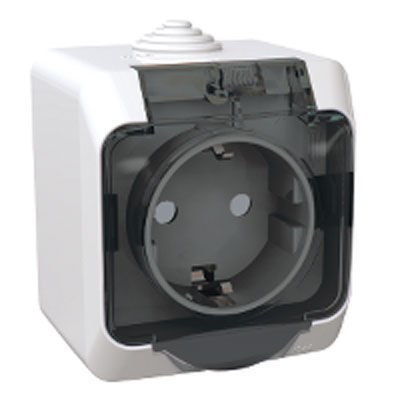 ЭТЮД Розетка наружная с заземлением со шторками IP44 белая