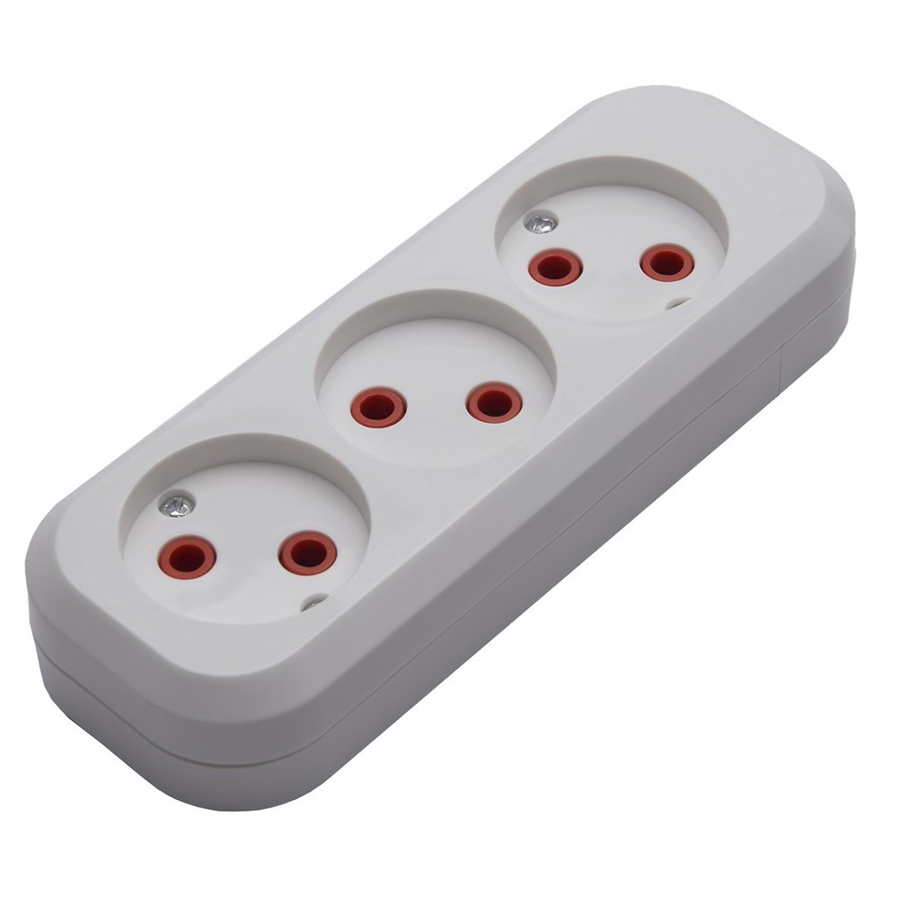 Розетка переносная STEKKER PST10-300-20 (разборная) на 3 гнездо, без заземления. Материал: полипропилен, латунь, цвет белый, размер 161*58*30мм. Номинальное напряжение 250В, номинальный ток 10А, диапазон рабочих температур 0..+40°C, IP20