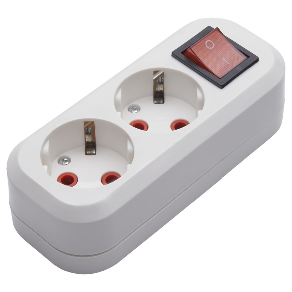 Розетка переносная STEKKER PST16-211-20 (разборная, с выключателем) на 2 гнездо, с выключателем, с заземлением. Материал: полипропилен, латунь, цвет белый, размер 141*59*47мм. Номинальное напряжение 250В, номинальный ток 16А, диапазон рабочих температур 0..+40°C, IP20