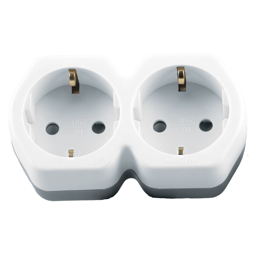 Сетевой разветвитель STEKKER ADP16-12-20 (ADP16-12-20) с заземлением, количество присоединяемых устройств 2, номинальное напряжение 250В, номинальный ток 16А, материал пластик, цвет белый+серый, IP20