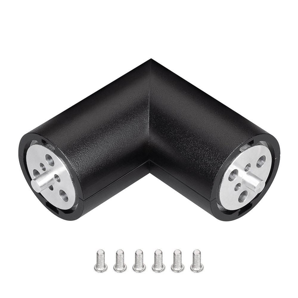 Угловой коннектор для соединения двух отрезков профиля ROUND-D36-360 под углом 90°. Устанавливается с помощью внутренней втулки, фиксируется идущими в комплекте винтами. Применяются при изготовлении светильников сложной геометрии. Наличие отверстия позволяет использовать соединитель для подвода питания к светодиодной ленте.