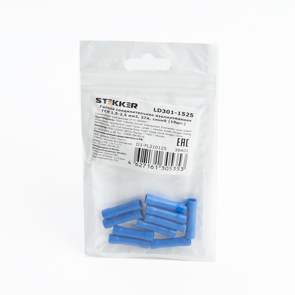 LD301-1525 Гильза соединительная изолированная ГСИ 1,5-2,5 мм2, 27A, синий (10шт в упак)