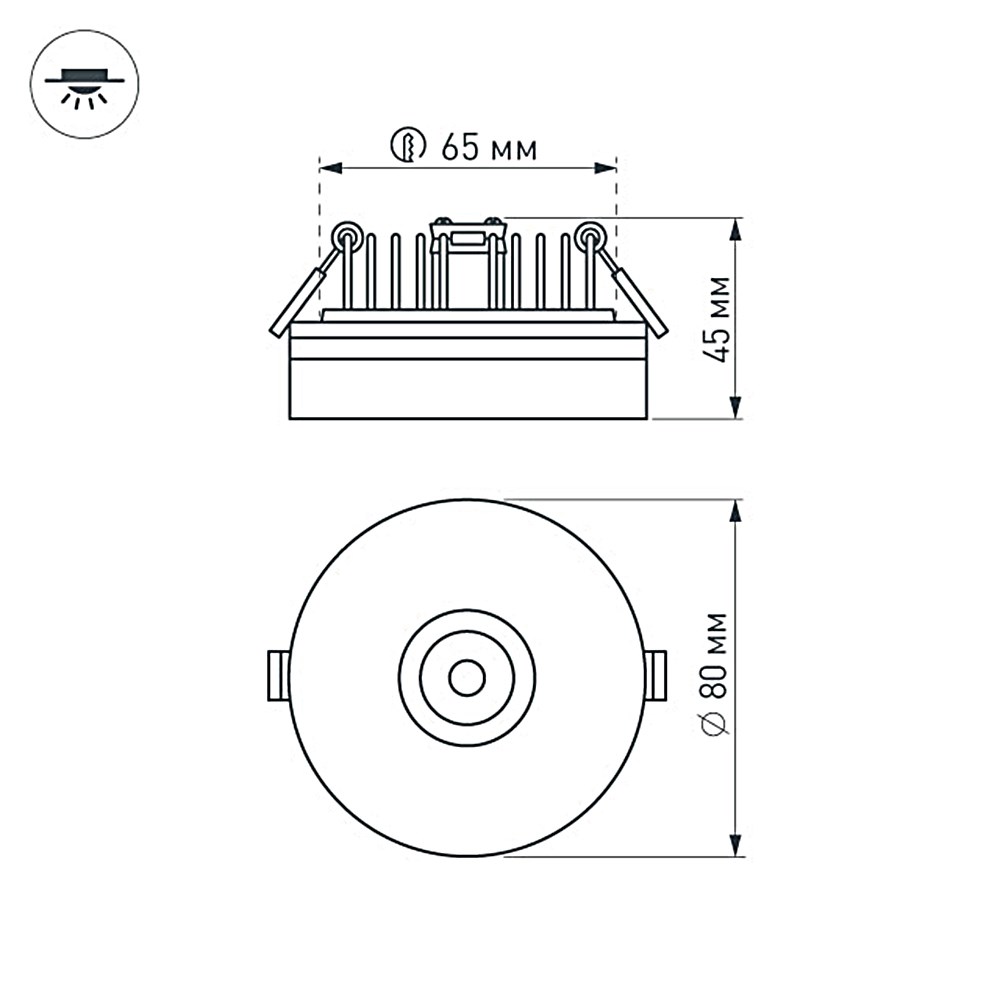 Монтажное отверстие, диаметр65 мм