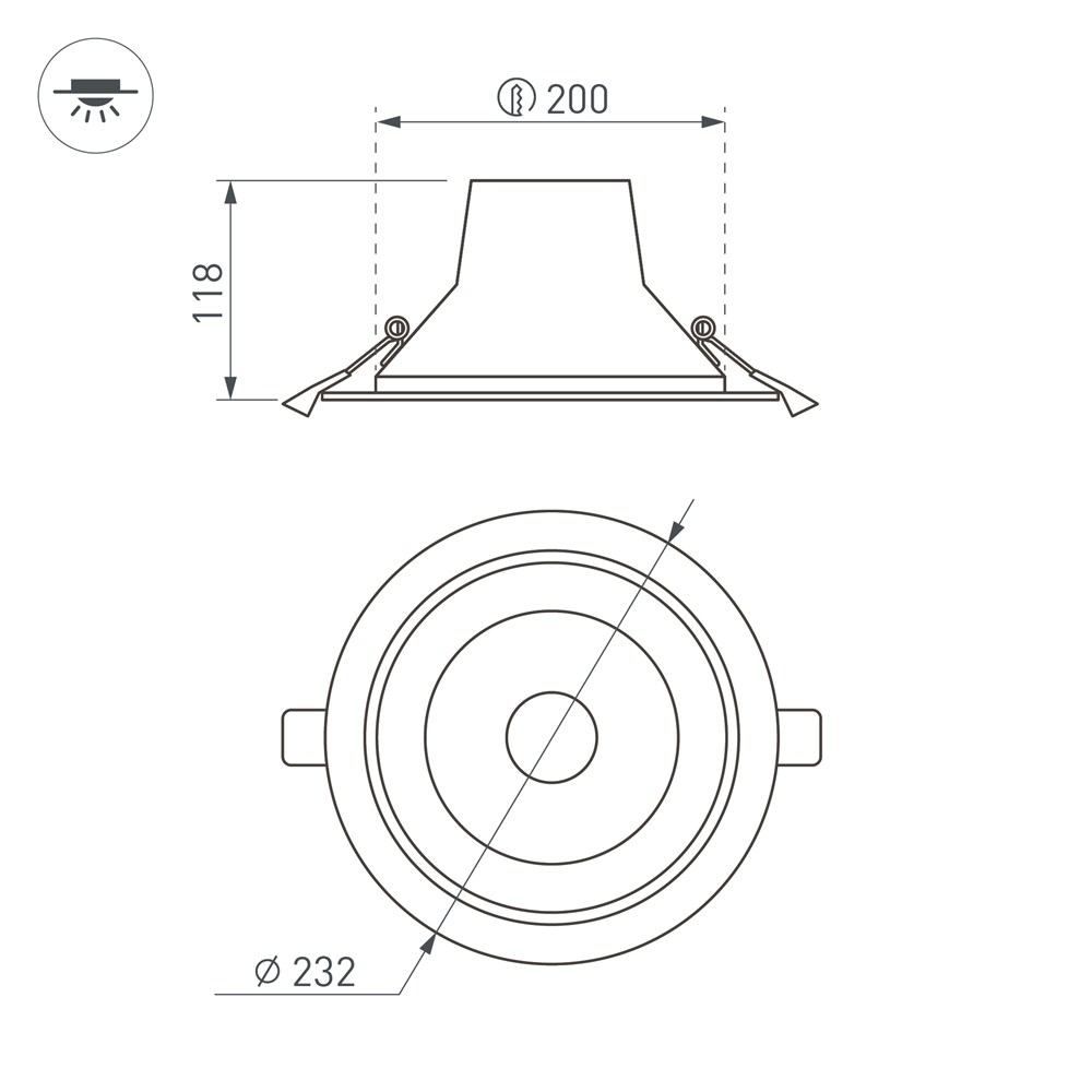 Встраиваемый светильник-даунлайт LTD-LEGEND-R230-35W Day4000 (WH, 50 deg) мощностью 35 Вт, с дневным цветом свечения (4000 К) и высоким индексом цветопередачи CRI>80 обеспечивает равномерное освещение без мерцания и видимости точек светодиодов. Особая конфигурация корпуса диаметром 232 мм позволяет эффективно отводить тепло и продлевает срок службы светодиодов. Светильник с узким углом рассеивания 50° и световым потоком 3150 лм обеспечивает качественный свет. Светильник легко устанавливается с помощью пружин в монтажное отверстие диаметром 195-210 мм. В комплекте поставляется драйвер, что позволяет безопасно и быстро подключать светильник напрямую к сети переменного тока 230 В. Дополнительные аксессуары приобретаются отдельно. Идеально подойдет для освещения офисных и коммерческих помещений.