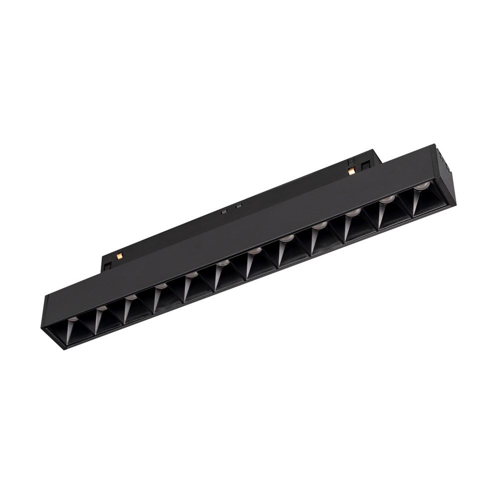 Линейный магнитный светильник MAG-FLEX-LASER-L235-8W Day4000 (BK, 24 deg, 48V) мощностью 8 Вт с дневным белым цветом свечения (4000 К), световой эффективностью 58 лм/Вт. Высокий индекс цветопередачи (CRI>90) и световой поток 460 лм - отличное решение для качественного освещения. Удовлетворяет требованиям проектов, так как обеспечивает наилучшую передачу цветов. Быстрый и надежный монтаж на подвесной трек серии MAG-FLEX с напряжением питания 48 В выполняется при помощи магнитов и механических фиксаторов (драйвер поставляется отдельно). Узкий угол излучения 24° подходит для направленного освещения. Длина светового модуля 235 мм. Минимальный коэффициент пульсации (менее 1%) гарантирует зрительный комфорт без пульсаций. Корпус светильника окрашен в черный цвет, выполнен с защитой от пыли IP20, и позволяет применять модель внутри помещений, где нет контакта с водой или другими жидкостями. Идеально подходит для освещения жилых, офисных, коммерческих и других помещений.