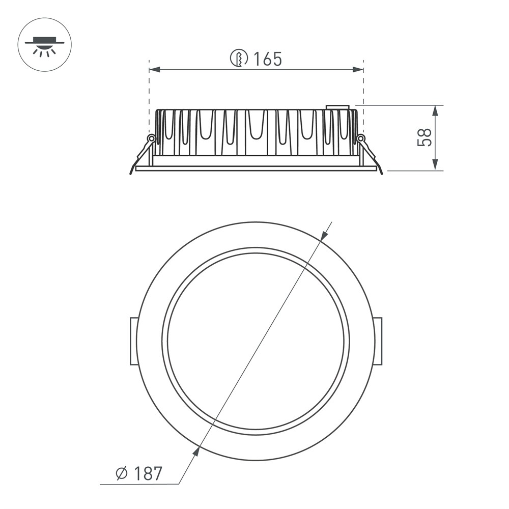 Монтажное отверстие, диаметр165 мм
