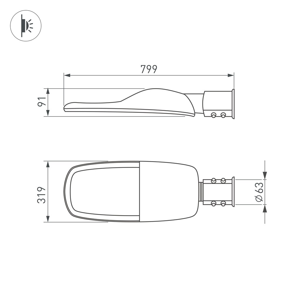 Светильник светодиодный консольный TURI предназначен для освещения улиц, придомовых территорий, железнодорожных станций, автомобильных дорог. Степень пылевлагозащиты корпуса на уровне IP66 рассчитана на длительное использование на открытом воздухе, а так же обеспечивает надежную работу в неблагоприятных условиях. Монтаж светильника осуществляется на кронштейн диаметром 63 мм. Световой модуль отклоняется вверх и вниз в диапазоне 15˚.