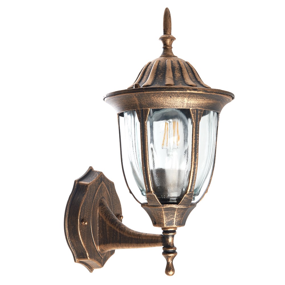 Светильник садово-парковый, серии «Белладжо» (НБУ) FERON PL6301 1*60W, E27, 230V, IP44, цвет черное золото, 6-и гранник, на стену вверх, 190*160*380мм