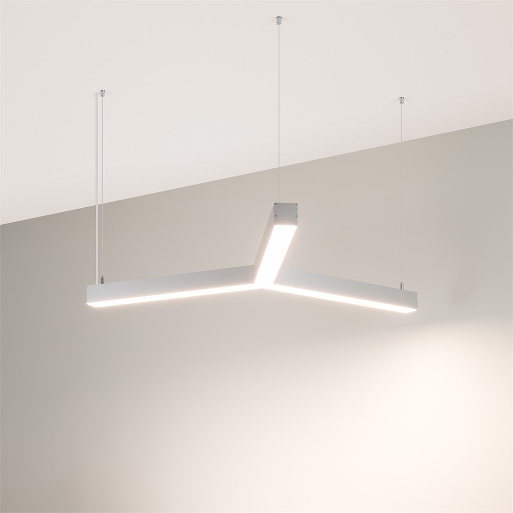 Подвесной светильник 3 ЛУЧА серии SP, произведен из цельного высококачественного алюминия. Габаритные размеры светильника 790х910х50 мм (длина одного луча 510 мм), сечение профиля 50х50 мм. Крепление светильника производится с помощью регулируемых тросов. Поставляется в готовом виде и не требует дополнительной сборки.