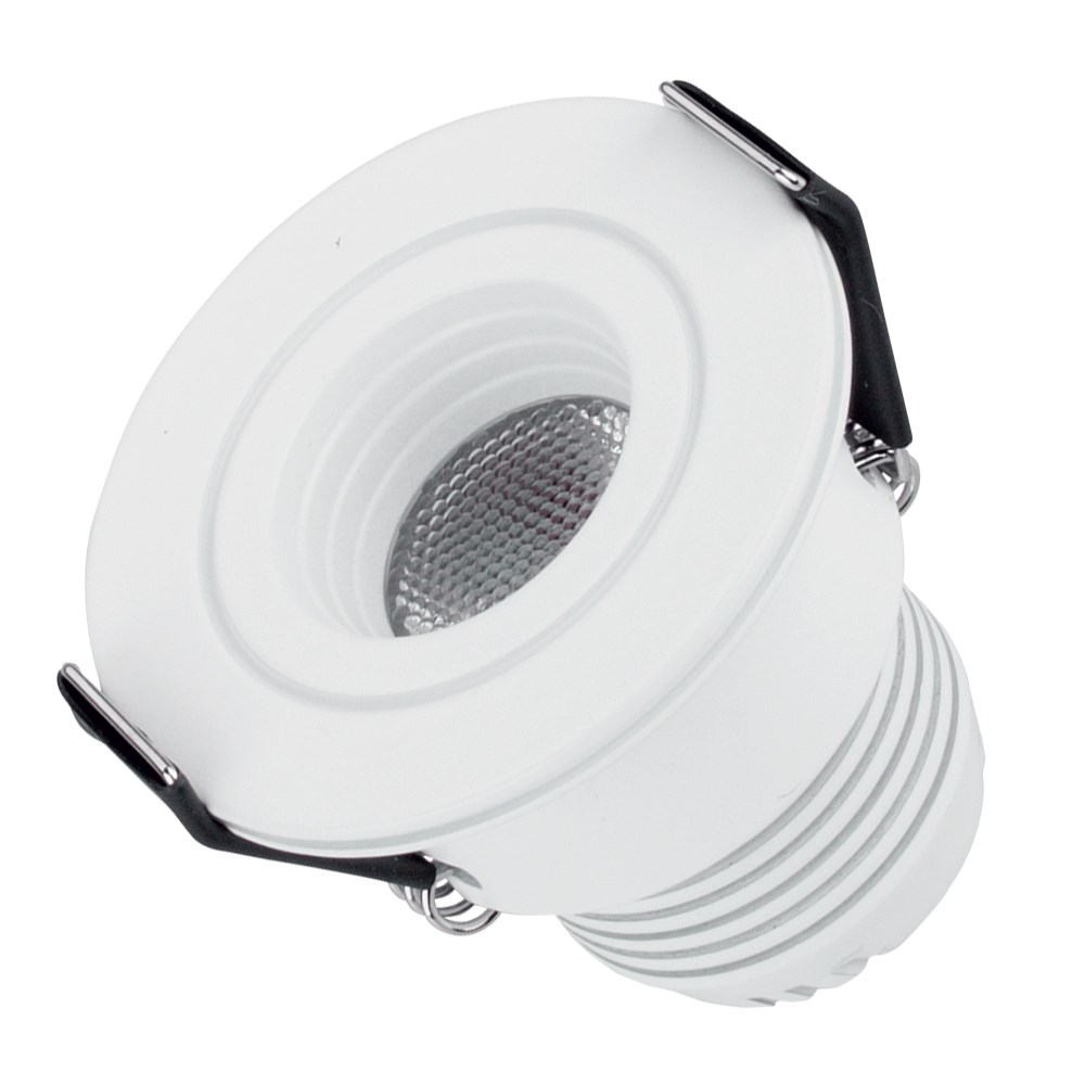 Врезной круглый мебельный светильник 3Вт, корпус белый алюминий. Цвет ТЁПЛЫЙ БЕЛЫЙ 2700-3000K. Светодиод 1х3W CREE XPE. Св.поток 140-160лм, угол 30°. Питание 180-240VAC, 3Вт, 700mA 3-5V, драйвер в комплекте. Размеры d45x48 мм, врезное отверстие d39 мм.