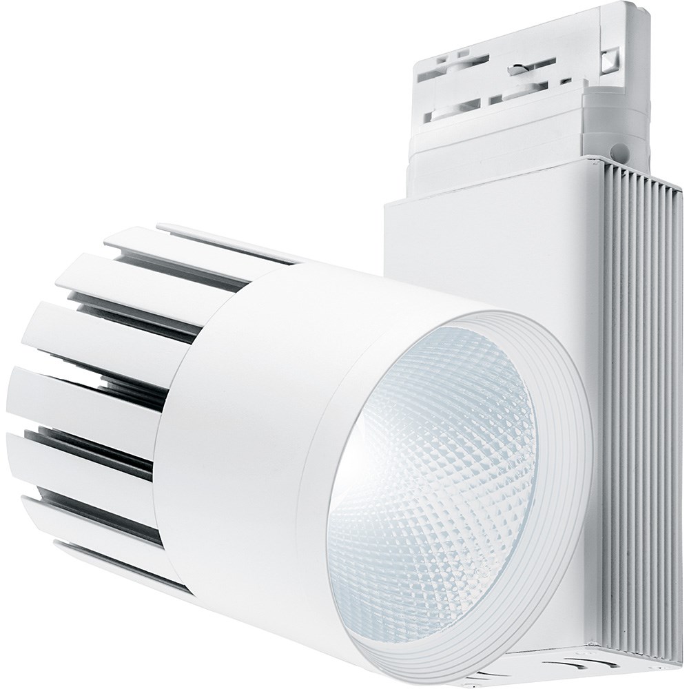 Светильник трековый на шинопровод, трехфазный (ДПО) FERON AL105, 30W, 4000К (белый), 170-265V, 2700Lm, цвет белый, корпус алюминий, рассеиватель поликарбонат, вращение →360°/↓270°, 100*148*195 мм