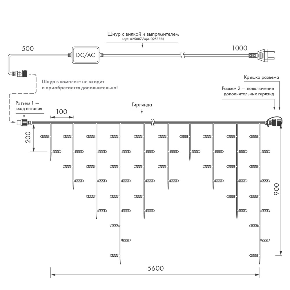 Универсальная светодиодная гирлянда "БАХРОМА" серии Pro отлично подходит для украшения и создания праздничной атмосферы как внутри помещений, так и снаружи (степень пылевлагозащиты IP65 позволяет размещать гирлянду на улице под навесом). Имея размеры 5600 x 900 мм, она может использоваться для оформления средних и больших площадей. Универсальные соединительные разъемы позволяют наращивать длину до 50 м без использования дополнительных аксессуаров. Выпуклая молочно-белая линза и эффект непрерывного свечения обеспечивают мягкое, спокойное и равномерное освещение украшаемых объектов. Холодный белый свет помогает создать необходимую атмосферу для декоративного объекта. Провод изготовлен из каучука и окрашен в черный цвет. Аксессуары для подключения гирлянды к сети приобретаются отдельно.