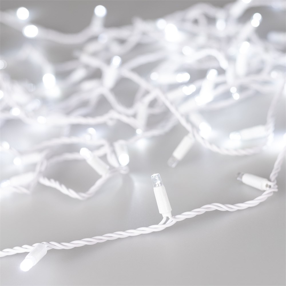 Универсальная светодиодная гирлянда "НИТЬ" серии Classic, предназначенная для декорирования и создания праздничного настроения как внутри помещений, так и снаружи (степень пылевлагозащиты IP65 позволяет размещать гирлянду на улице под навесом). Имея длину 10000 мм, она может использоваться для оформления средних и больших площадей. Универсальные соединительные разъемы позволяют наращивать длину до 50 м без использования дополнительных аксессуаров. Прозрачная вогнутая линза и эффект медленного мерцания каждого светодиода обеспечивают яркое, динамичное освещение, выделяя украшаемые объекты. Холодный белый свет помогает создать необходимую атмосферу для декоративного объекта. Провод изготовлен из ПВХ и окрашен в белый цвет. Аксессуары для подключения и управления приобретаются отдельно