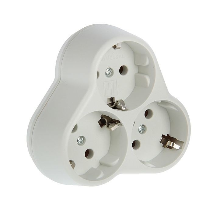 Тройник на 3 гнезда с заземлением круглый 16А (АК303) UNIVersal