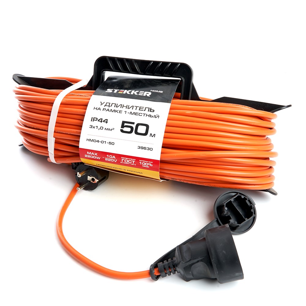 Удлинители STEKKER HM02-01-50, серия Home, цвет оранжевый, длина 50 м, количество розеток 1, латунь, сечение кабеля 1 мм2, тип кабеля ПВС, материал кабеля медь, ток 10А, напряжение 220В, максимальная нагрузка 2200Вт, тип вилки - угловая. Диапазон рабочих температур +1..+35°C, степень защиты IP44, класс защиты от поражения эл. током 1, размеры изделия 380*140*135. Гарантия 1 год.